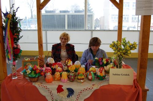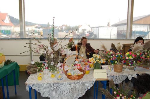 Jarmark Wielkanocny zgromadził na obiekcie sportowym ponad 25 wystawców. Dopisała pogoda, wystawcy oraz kupujący. Pięknie przyozdobione stoiska wprawiły tego dnia w zachwyt niejedną osobę. Można było nabyć palmy wielkanocne, pisanki, ozdobne koszyczki, serwety, rzeźby ludowe, wiosenną biżuterię artystyczną pamiątki religijne, jednym słowem dla każdego coś miłego!Wszystkim uczestnikom bardzo smakowały również przygotowane przez gospodynie potrawy.