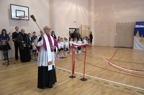 Uroczystość rozpoczęto mszą świętą celebrowaną przez proboszcza z Paszyna Ks. Stanisława Janasa w kościele parafialnym w Paszynie o godzinie 1000. Oprawę muzyczną nabożeństwa zaprezentowała orkiestra z Paszyna wraz z uczniami szkoły. Zakończenie nabożeństwa pozwoliło przenieść się do Zespołu Szkół, gdzie zaproszeni goście zostali powitani przez nauczycieli prowadzących imprezę Panią Ewelinę Fedusiewicz oraz Pana Wojciecha Citaka. Ważnym punktem w harmonogramie uroczystości było poświęcenie nowego obiektu przez księdza prałata Stanisława Janasa. Przekazania sali dokonał Wójt Gminy Chełmiec Bernard Stawiarski, który wraz z sołtysem Paszyna Stanisławem Skrzypcem oraz Dyrektorem Zespołu Szkół Barbarą Chronowską przecięli symboliczną wstęgę, tuż po historycznym przecięciu usłyszeć mogliśmy hymn szkoły wykonany przez chór szkolny. Następnie głos zabrała Pani Dyrektor Zespołu Szkół, która serdecznie podziękowała za całą inicjatywę budowy sali, dzięki której miejscowość zyskuje kolejny bezcenny dla lokalnej społeczności element infrastrukturalny. Pani Dyrektor przekazała specjalne podziękowania Wójtowi Bernardowi Stawiarskiemu „za to, że jest konkretnym człowiekiem, który na jednym ze spotkań miał obiecać, że Paszyn jako pierwszy w gminie będzie miał swoją salę sportową i słowa dotrzymał”. Uroczyście wręczono kwiaty Wójtowi, po czym sam zabrał głos życząc pomyślnych i rozważnych kroków w wykorzystaniu przekazanej w użytkowanie sali. Gorące brawa wywołała część artystyczna, w której swoje umiejętności taneczne zaprezentowali gimnazjaliści oraz uczniowie szkoły podstawowej. Usłyszeć można było kolejno piosenki przygotowane specjalnie na tę okazję, a na deser obejrzeć przedstawienie „konferansjerka” w wykonaniu tutejszych uczniów. Słowa uznania należą się Zespole Szkół za dogranie każdego najmniejszego szczegółu organizacyjnego.
