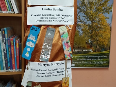 Wystawa pokonkursowa Zakładek do książek inspirowanych wierszami którą można było oglądać do tej pory w ASTRO CENTRU zawitała właśnie do Gminnej Biblioteki. Odwiedzając bibliotekę zachęcamy do zapoznania się z twórczością naszych Młodych Artystów. Zakładki inspirowane twórczością Cypriana Kamila Norwida, Krzysztofa Kamila Baczyńskiego oraz Tadeusza Różewicza są jedyne w swoim rodzaju i już niedługo trafią w ręce najbardziej gorliwych czytelników naszej Biblioteki Gminnej.
