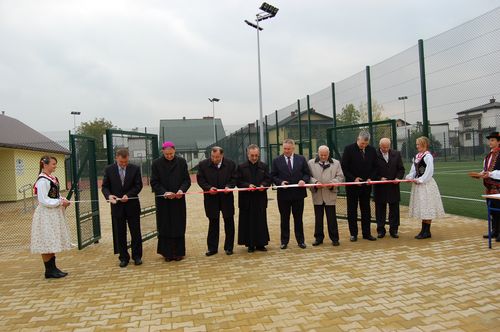 Następnie dokonano uroczystego przecięcia wstęgi oraz poświęcony został kompleks boisk.