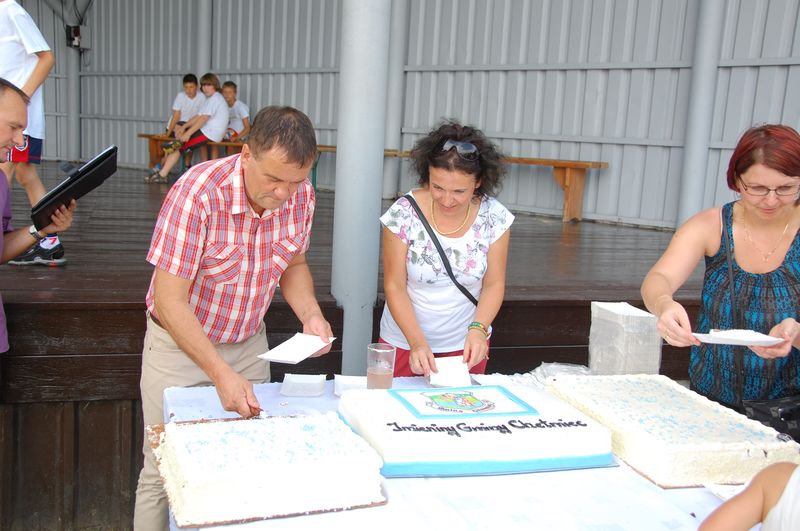 Na początku imieninowej zabawy plenerowej Wójt Gminy Chełmiec Bernard Stawiarski pokroił imieninowy tort przygotowany przez piekarnię w Tęgoborzy oraz wręczył symboliczny klucz do auta bojowego zakupionego przez UG w Chełmcu druhom z OSP w Krasnem Potockiem, życząc im jak najmniej wyjazd ów do akcji tym wozem oraz niech ma ich w opiece Św. Krzysztof.