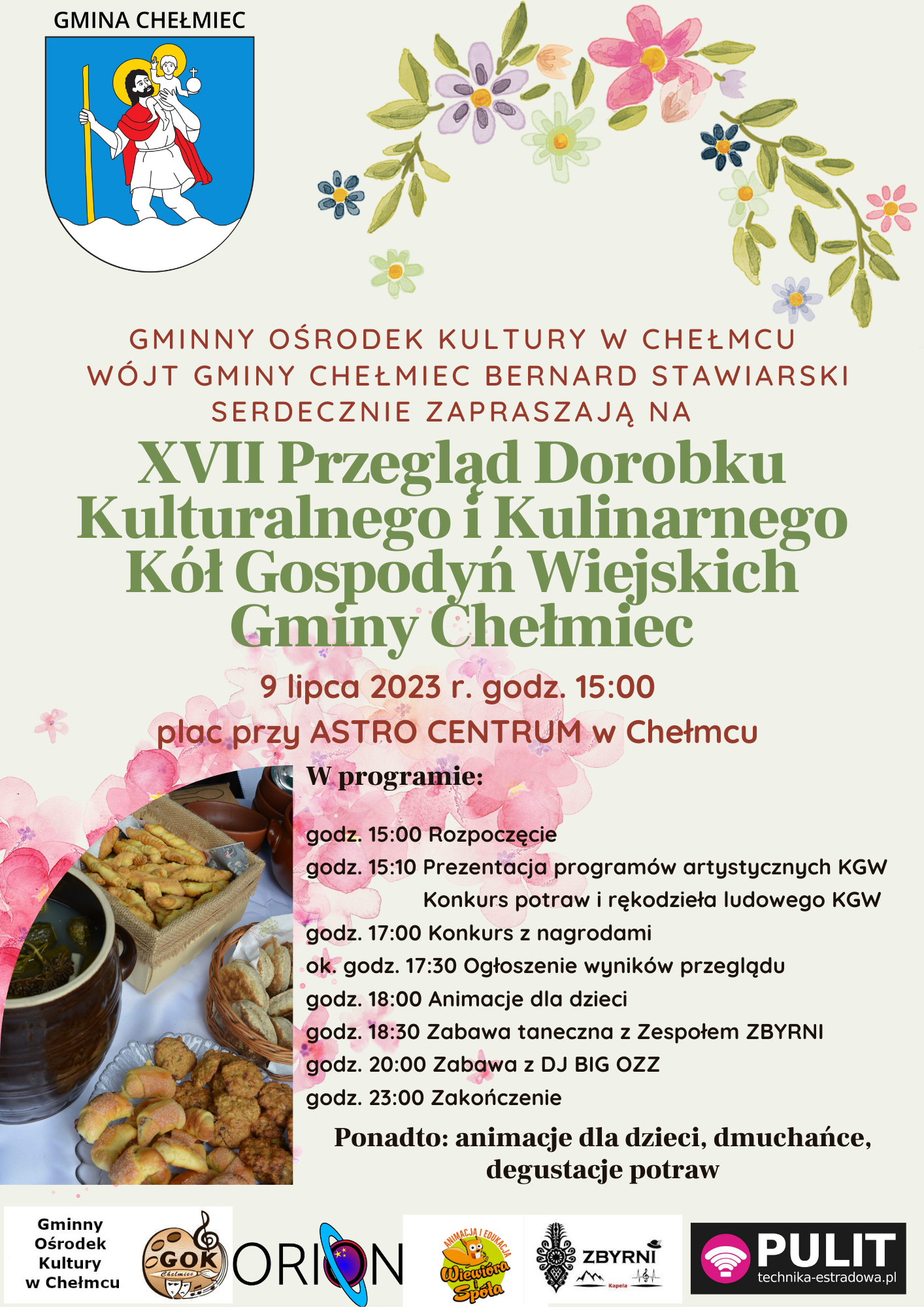 Już w tą niedzielę od godziny 15:00 zapraszamy serdecznie na Przegląd KGW gminy Chełmiec. Nie zabraknie degustacji potraw regionalnych, animacji dla dzieci, konkursów z nagrodami oraz dobrej zabawy z DJ.