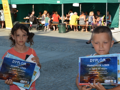 Robot na stoisku Naukowej Wioski rysował figury, imiona i nazwy. Rozdaliśmy nagrody w konkursie "Osiem planet" organizowanym przez obserwatorium ASTRO CENTRUM. Każdy mógł spróbować kosmicznej zupy, stworzyć na warsztatach swoją własną niepowtarzalną planetę, wziąć udział w konkursach oraz przyozdobić się tatuażem. Do godziny 23:00 bawiliśmy się z DJ Mobius. Zapraszamy na następne organizowane przez GOK i Obserwatorium wydarzenia.