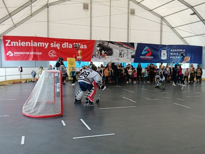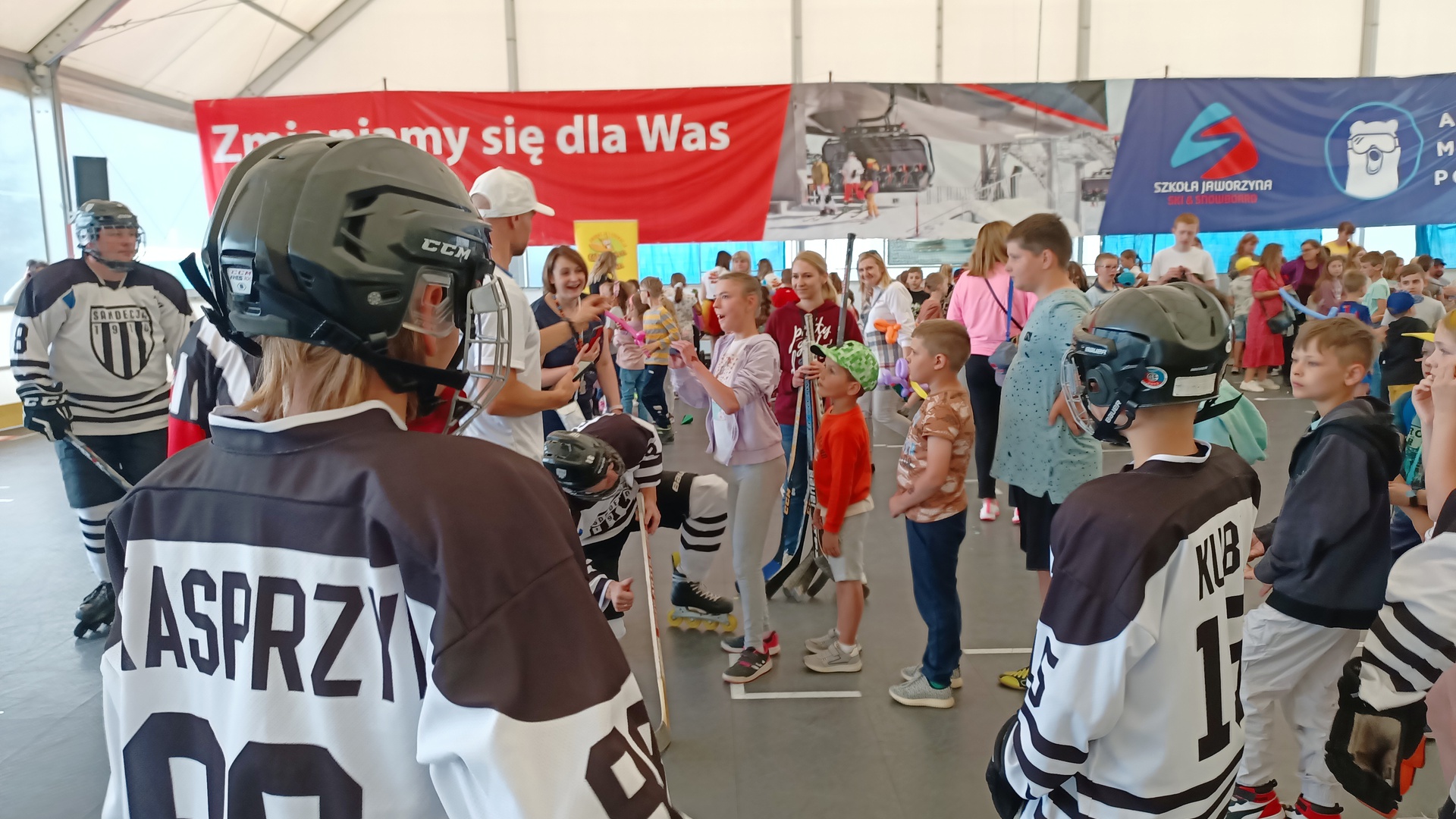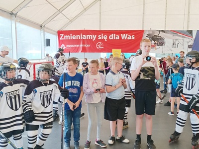Na koniec organizatorzy czyli WSiR w Chełmcu oraz GOK w Chełmcu zaprosili do prezentacji swoich osiągnięć Stowarzyszenie Nowosądecki Sport, Klubu Sandecja - dziecięcą sekcję hokeja. Najmłodsi uczestnicy Dnia Dziecka mieli możliwość postrzelać czarnym krążkiem do hokejowej bramki, które również były nagrodą w tej zabawie. Piękne, kolorowe malunki na twarzach młodych ludzi powstawały dzięki wspaniałej ekipie animatorek Wiewióra i Spóła, a instruktorki z GOK w Chełmcu przygotowały dla dzieci balonowe ZOO i symboliczne tatuaże.