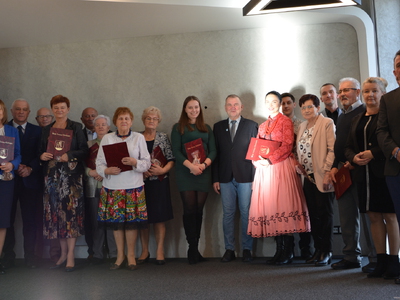 Grażyna Pajor za ogromny wkład i zaangażowanie w szerzenie kultury lachowskiej wśród mieszkańców Gminy Chełmiec poprzez naukę tańca i śpiewu oraz opiekę nad Zespołem Regionalnym Niskowioki. Zgłoszona do nagrody przez Prezesa OSP Niskowa Jana Smolenia.