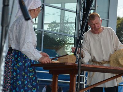 Panie i panowie z gminnych KGW, w ramach zmagań konkursowych prezentowały się w scenkach: