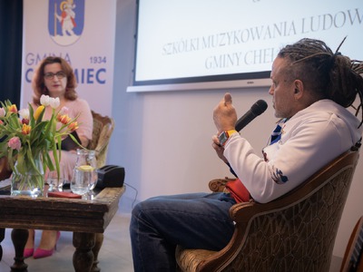 Dzieci i instruktorzy mieli również okazję zadawać pytania, co sprawiło, że atmosfera stała się nad wyraz interaktywna, pełna energii. Gość zachęcał młodych muzyków do poszukiwania własnego stylu oraz motywowania się do dalszego rozwoju artystycznego .